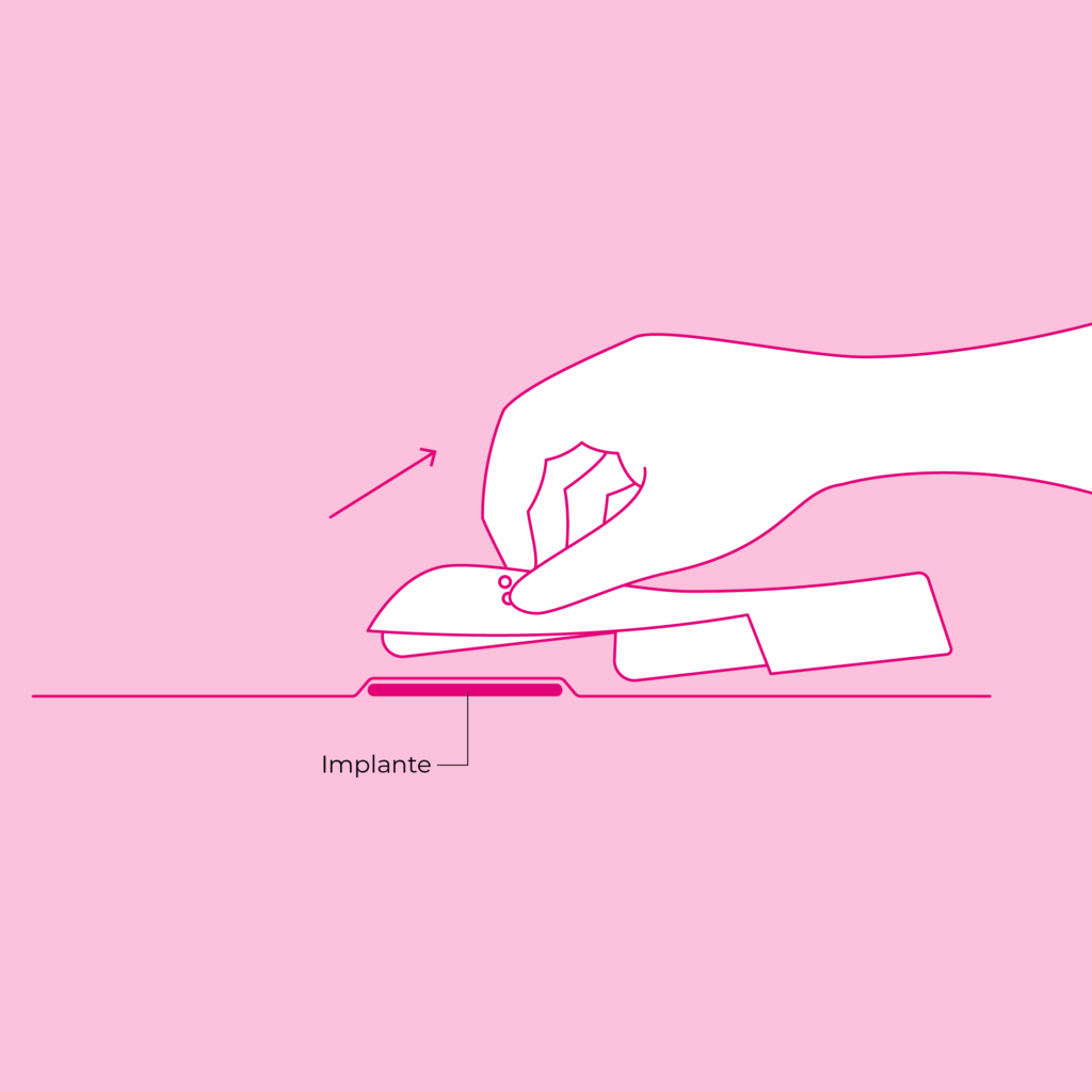 Se inserido corretamente, o implante permanece no lugar ou se move apenas um pouquinho até a remoção. É muito raro que ele se desloque de forma significativa, mas, caso isso aconteça, é possível perceber uma mudança no padrão menstrual ou sentir a haste saindo do braço. Nesse caso, é importante usar um método contraceptivo adicional e agendar uma consulta médica.¹